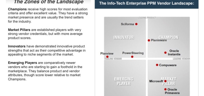 Planisware est positionné comme seul "Champion" dans l’étude annuelle 2012 sur le domaine de la gestion de projets et la gestion de portefeuille projets – ou Enterprise PPM / Project Portfolio Management – du cabinet Info-Tech.